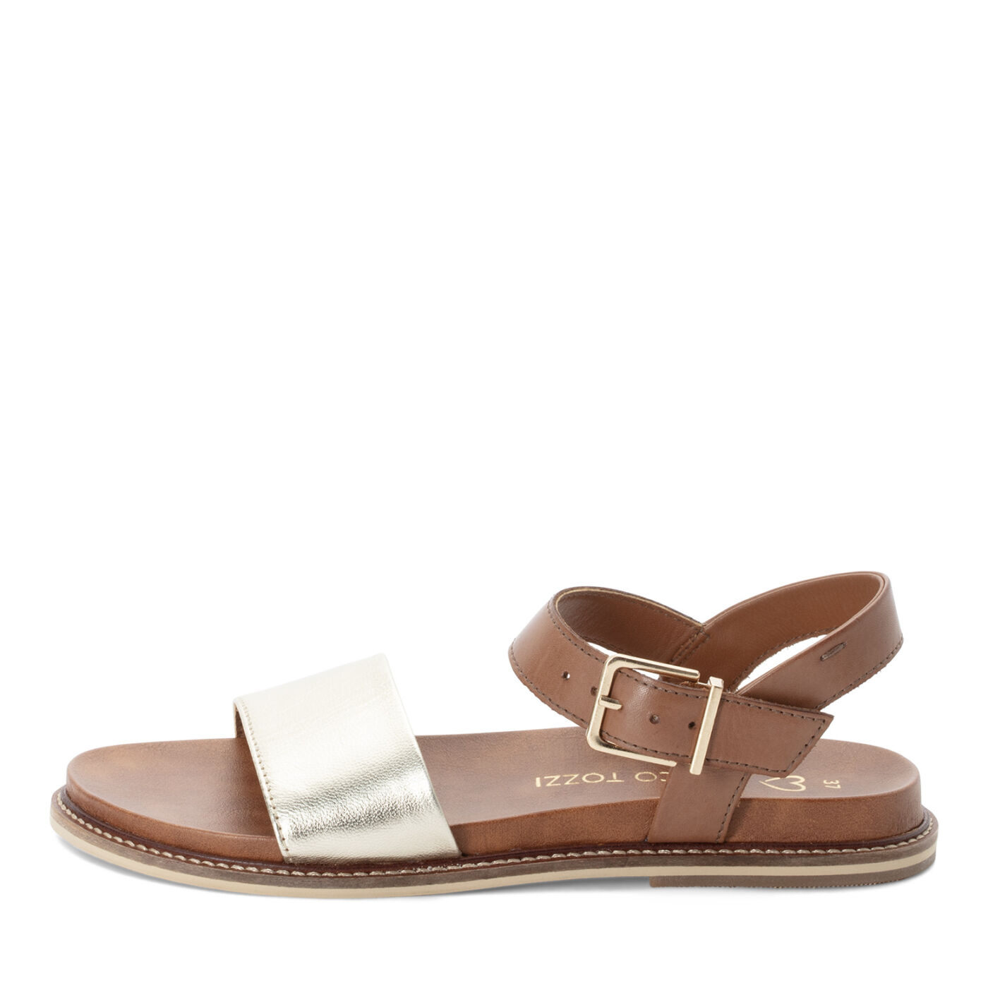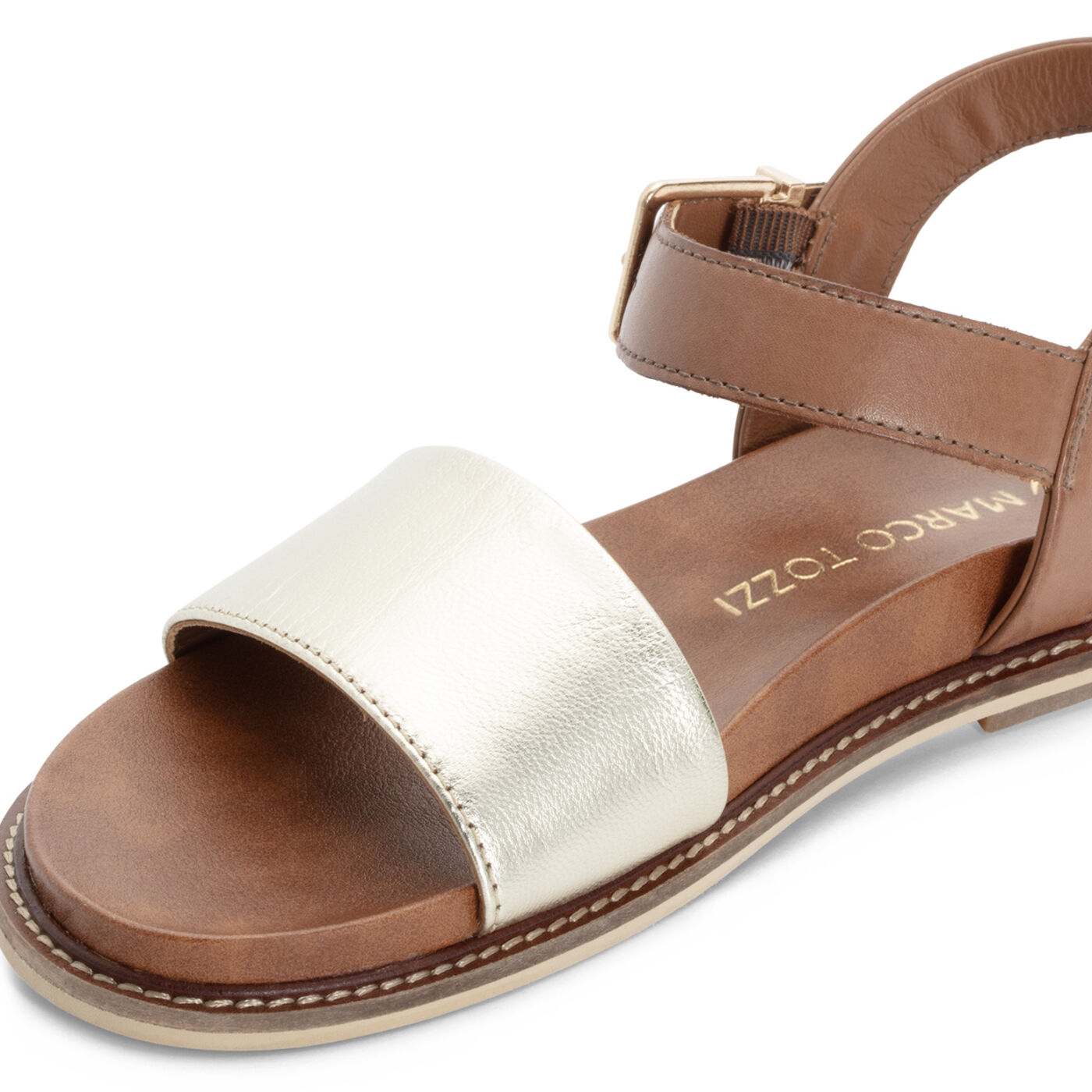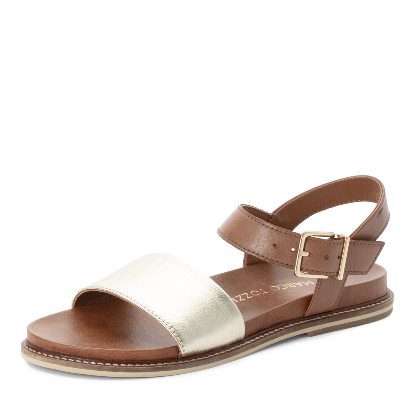 Γυναικείο δερμάτινο πέδιλο φλατ, της εταιρείας Marco Tozzi.